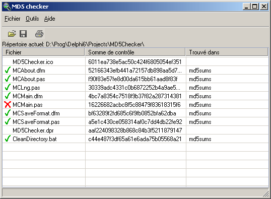 Pour des raisons professionnelles, j'avais besoin d'un utilitaire avec une interface graphique qui permette de calculer et de vérifier les sommes MD5 de fichiers. Il fallait que ce soit une application en un seul fichier, sans librairies annexes, et que l'interface soit multilingue. N'ayant rien trouvé qui me convienne, je l'ai écrit, la voici.