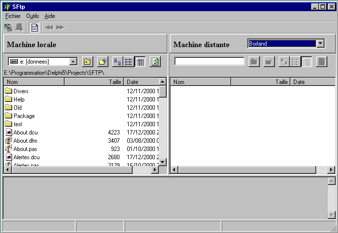 | 24 décembre 2000 | 0.4.0 | Ajout du choix de transmission binaire /ascii, suppression récursive, boutons émission et réception, icônes pour les fichiers reconnus dans la liste distante. Debuggage trie des listes, fermeture propre de la connexion ftp en cas d'échec sur le nom d'utilisateur ou le mot de passe. | En test |